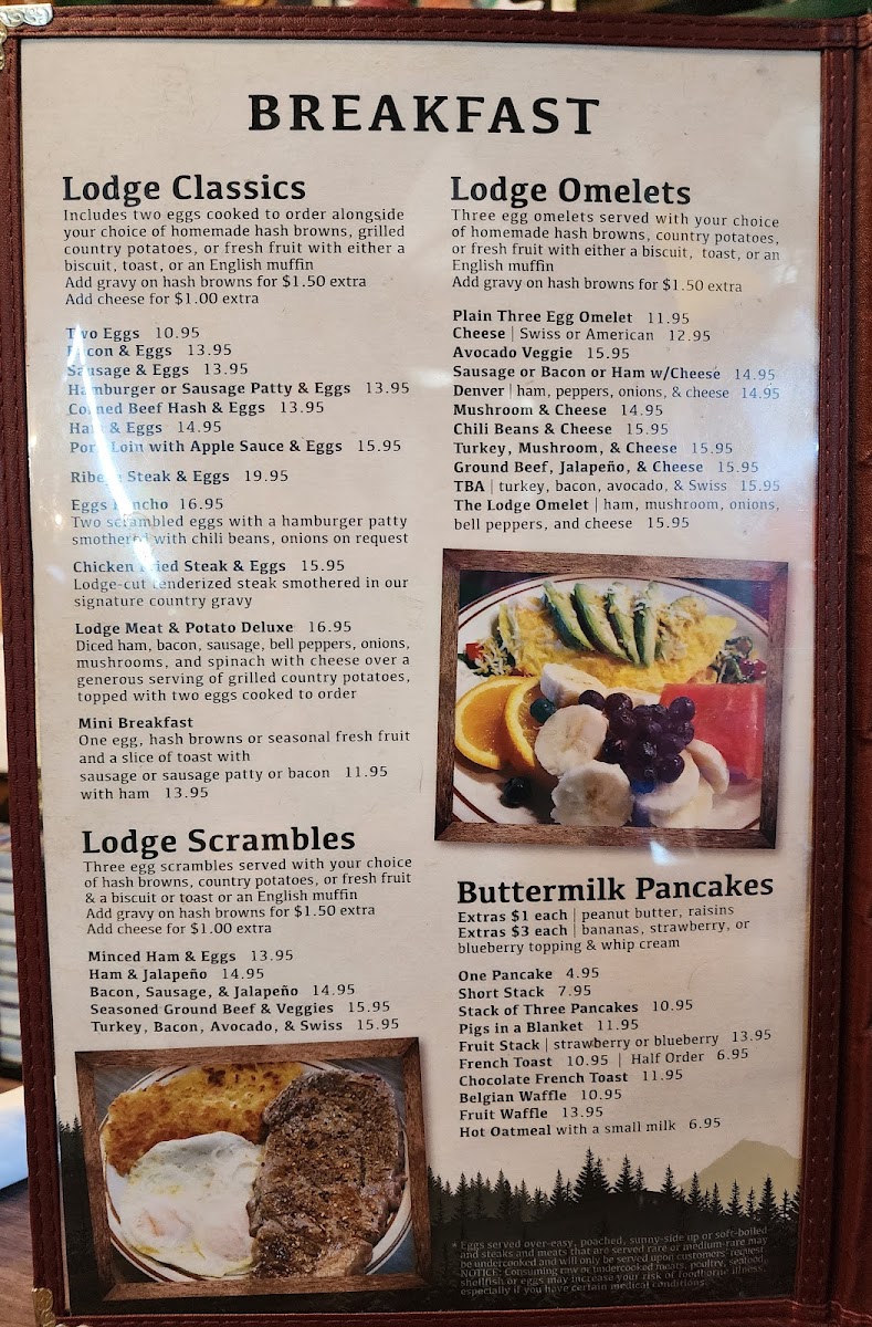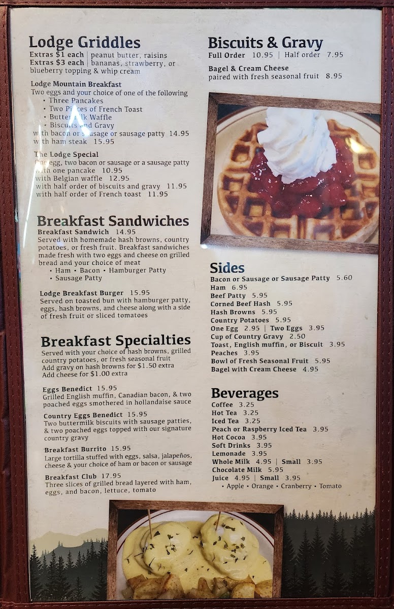 The menu at Lodge Coffee Shop offers a variety of options primarily focused on breakfast and lunch, complemented by a selection of coffee and beverages. It is structured to cater to customers looking for classic breakfast plates, coffee shop favorites, and casual lunch meals.